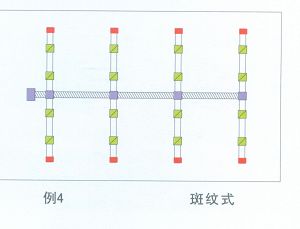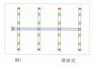 斑紋式是現在最常用的形式,主線道布置於走道中間,各枝體從主線道發散開。