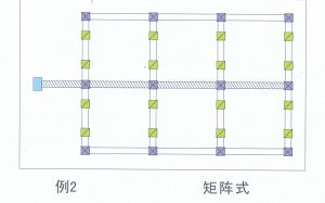 例證1 現代商務大樓中走廊兩邊都是辦公室,斑紋式和矩陣式是最合適的。