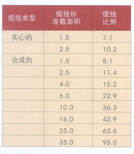 第二步:從表A中選擇能通過線槽的電線截面積大小和相應的線比例,如同:4MM2-15.2