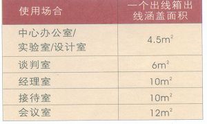 根據下面的表格可以計算出出線箱在開放式辦公室空間的推薦數目。