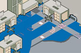 例證4 當費用作為關註重點時,選擇采用線槽式地板系統和預埋式地板系統合成的系統是首先考慮的。但要選擇使用合適的接線盒連接這兩個地板系統。
