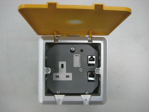 | Unicorn 方形多功能出線箱(new) 一位13A开关插座 两位 RJ45与RJ11网络与电话插孔 |