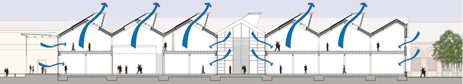 太阳能技术 太阳能技术是将太阳光能转变成电能。越来越多的建筑开始集成太阳光能发电,因此太阳能源运用于建筑业上有着迅速的发展。设置在屋顶的太阳能电源板可固定地安装在朝南的方向,或安装在可旋转的跟随太阳装置上,白天吸收最多的太阳光能,然后将光能转换成电能,供应给建筑物使用。